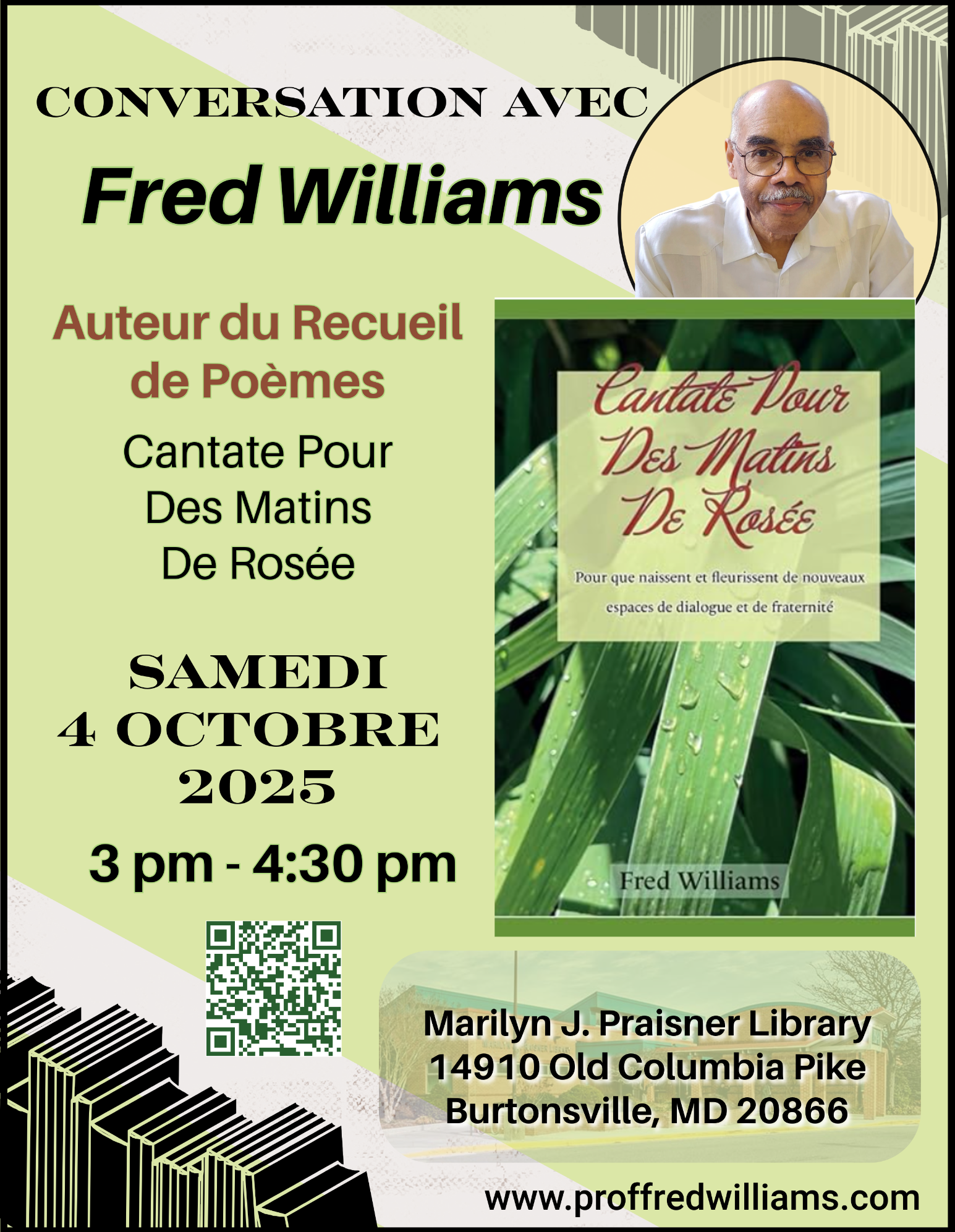 Fred Williams est titulaire d'un doctorat en didactique des langues de l'Université de Montréal, au Canada. Il a œuvré pendant de nombreuses années dans l'enseignement du français et de la littérature au niveau secondaire et à l'Education des Adultes, dans la province de Québec. Le professeur Williams a poursuivi sa carrière d'enseignant de langue à Howard University dans le district de Columbia à Washington où il a également travaillé dans le domaine des communications radio à la Voix de l'Amérique (Voice of America). Il demeure un ardent défenseur des valeurs éducationnelles et a toujours voué un intérêt particulier à la bonne formation et à la réussite des apprenants.